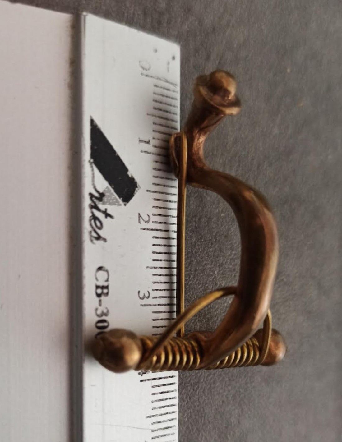 Reproduction made of bronze of a fibula, word from Latin, fibula (needle). It is called fibula to all types of metal parts used in antiquity to join or hold any of the garments that made up the clothing.