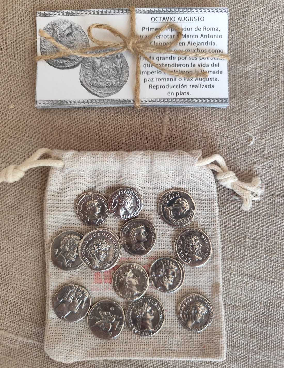 It consists of 13 silver denarii replicas of Iberian and Roman pieces, with diameters between 15 and 18 mm and dated between the 2nd century BC and the 2nd century AD.