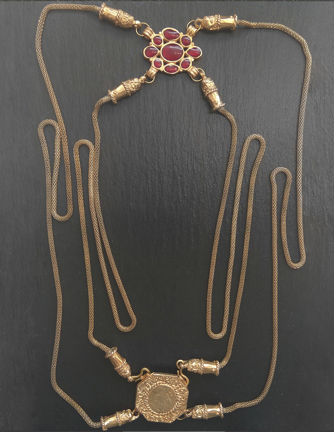 Esta cadena corporal es perfecta para recreación, es una pieza muy especial, un tipo de adorno con una larga historia ya que puede verse en representaciones tanto en el arte helenístico como en el romano, sin embargo las piezas reales halladas son extremadamente raras.