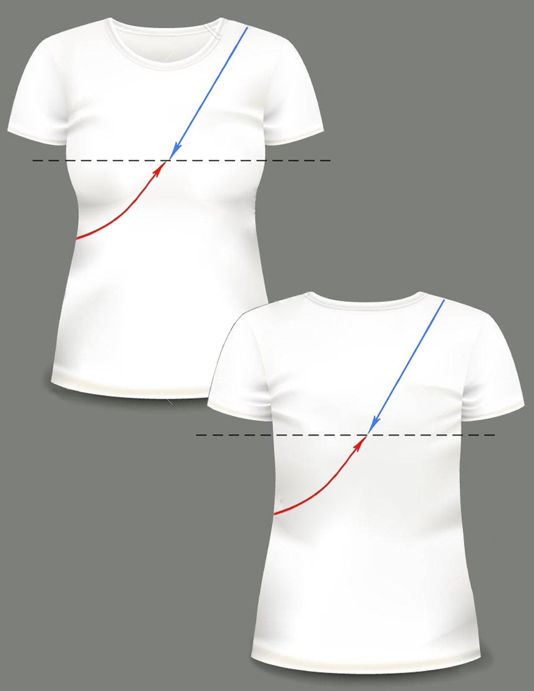 Medida 2, desde el centro del pecho hasta el centro de la espalda, pasando por debajo del pecho.