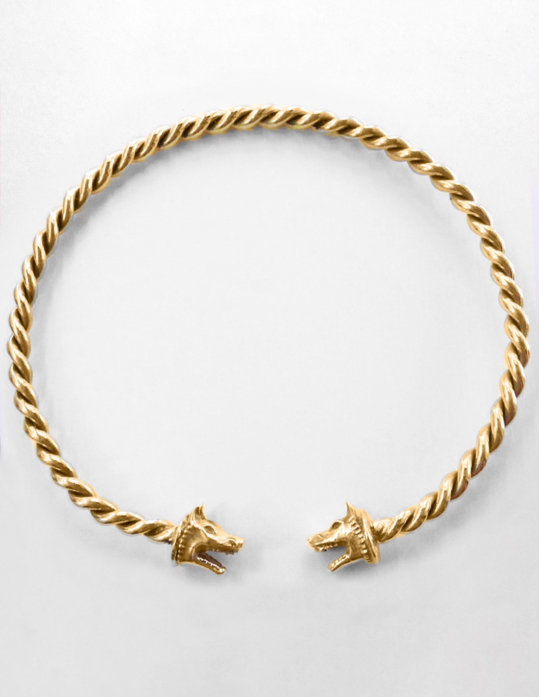 El torques es un collar rígido y redondo, que está abierto en la parte inferior. Típicamente las dos puntas del torques presentan ornamentos esculpidos con esferas, cubos o formas zoomórficas.