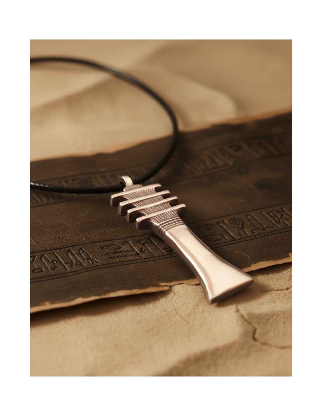 En el Antiguo Egipto los amuletos tenían una función mágica que protegía a la persona tanto en la vida como en la muerte frente a cualquier enemigo o de los malos espíritus. El pilar Djed, uno de los símbolos más reproducidos en la mitología egipcia. Representaba la columna vertebral del dios Osiris, un árbol, un poste conformando por gavillas de grano atadas.