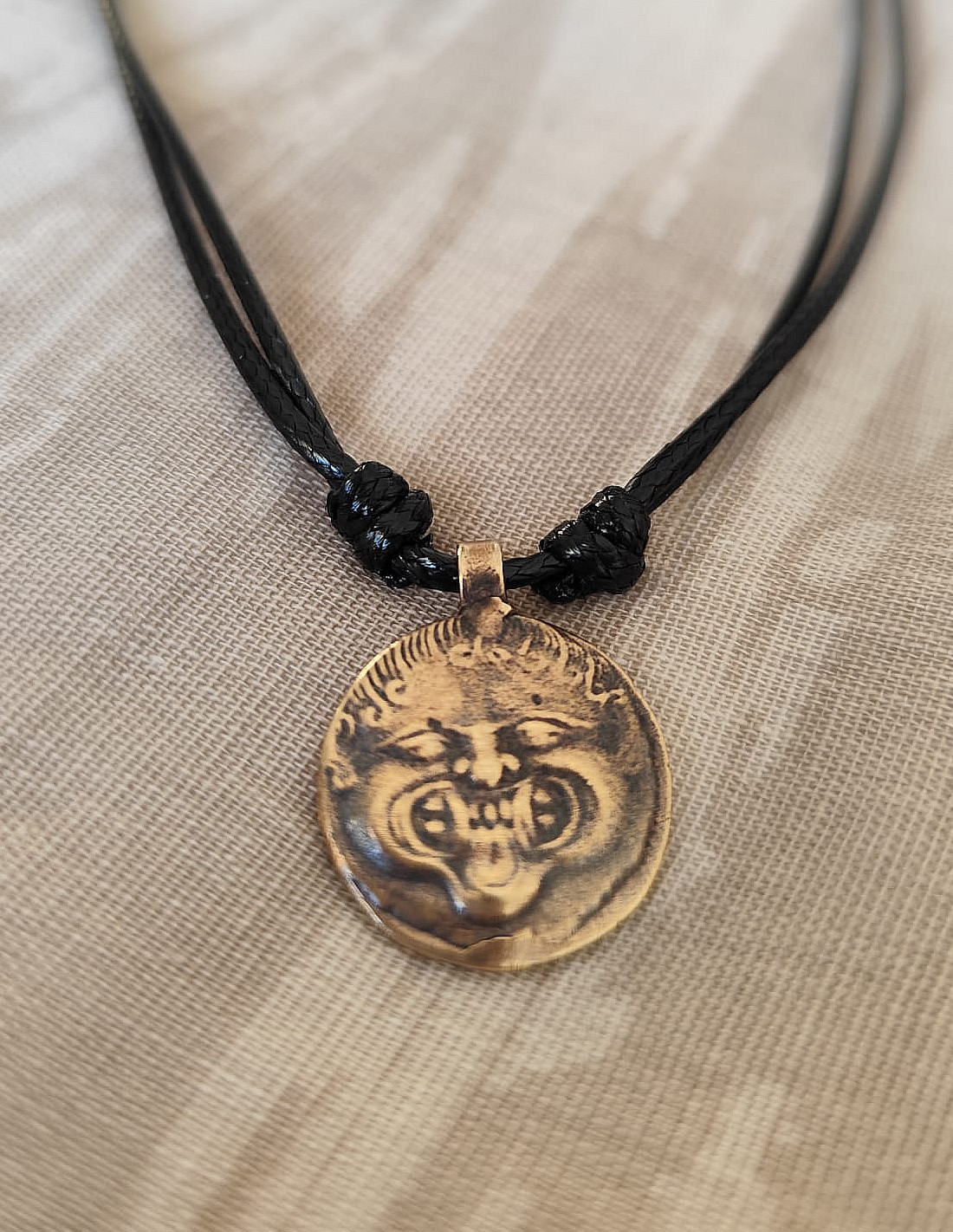 El llamado Gorgoneion, era un amuleto protector representado por la imagen de la Gorgona, generalmente sacando la lengua entre sus colmillos.