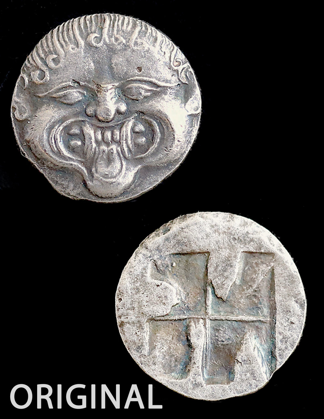 Le « Gorgoneion » était un amulette protectrice représentée par l’image de la Gorgone, généralement tirant la langue entre ses crocs.