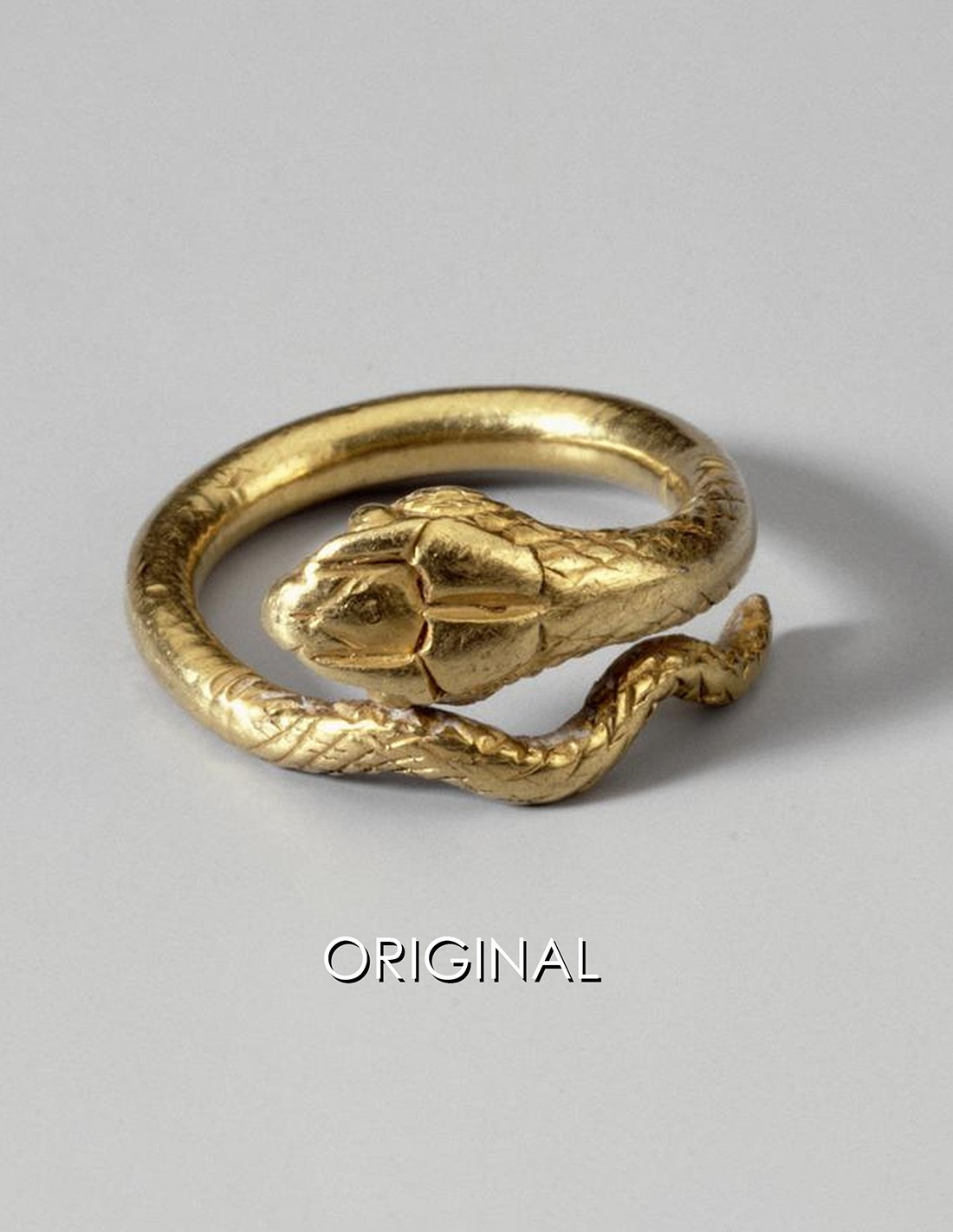 Il serpente, un motivo comune nei gioielli antichi. A causa della diffusa credenza nei suoi poteri magici, veniva utilizzato come amuleto portafortuna. Numerosi gioielli egizi, greci e romani adottano questa forma.