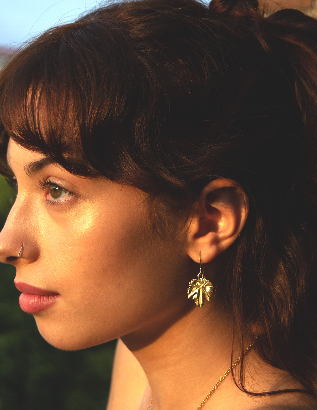 Fabricados en bronce amarillo, los ganchitos de los pendientes están realizados en plata de ley chapada en oro.