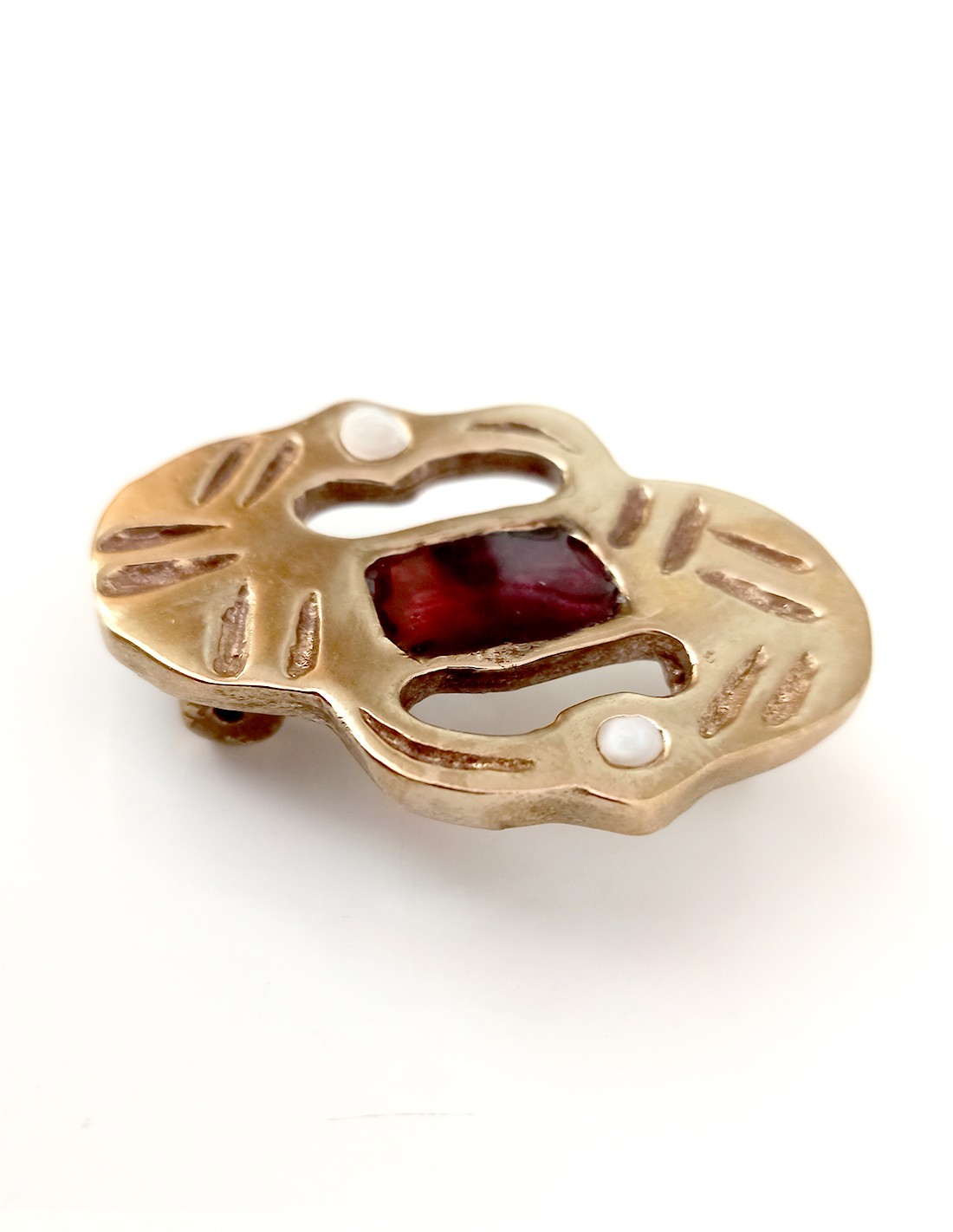 Replica di una spilla in bronzo formata da uccelli a forma di S e decorata con smalti.